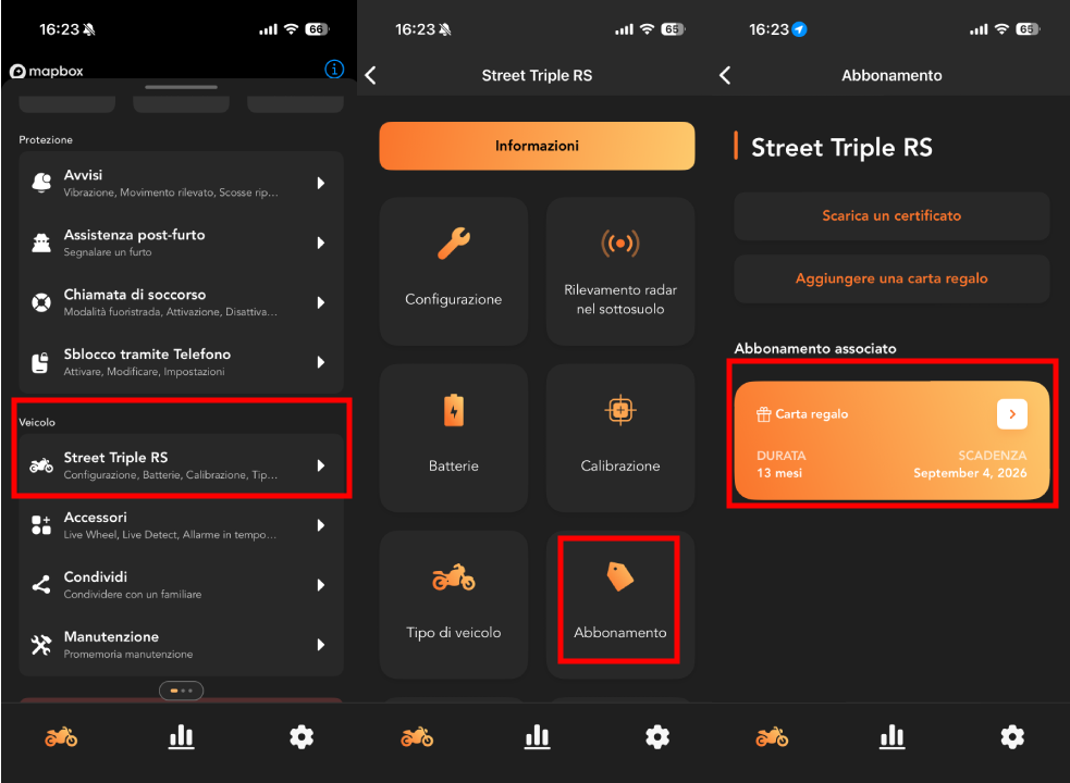 - Vai su Veicolo → Il mio veicolo → Abbonamento