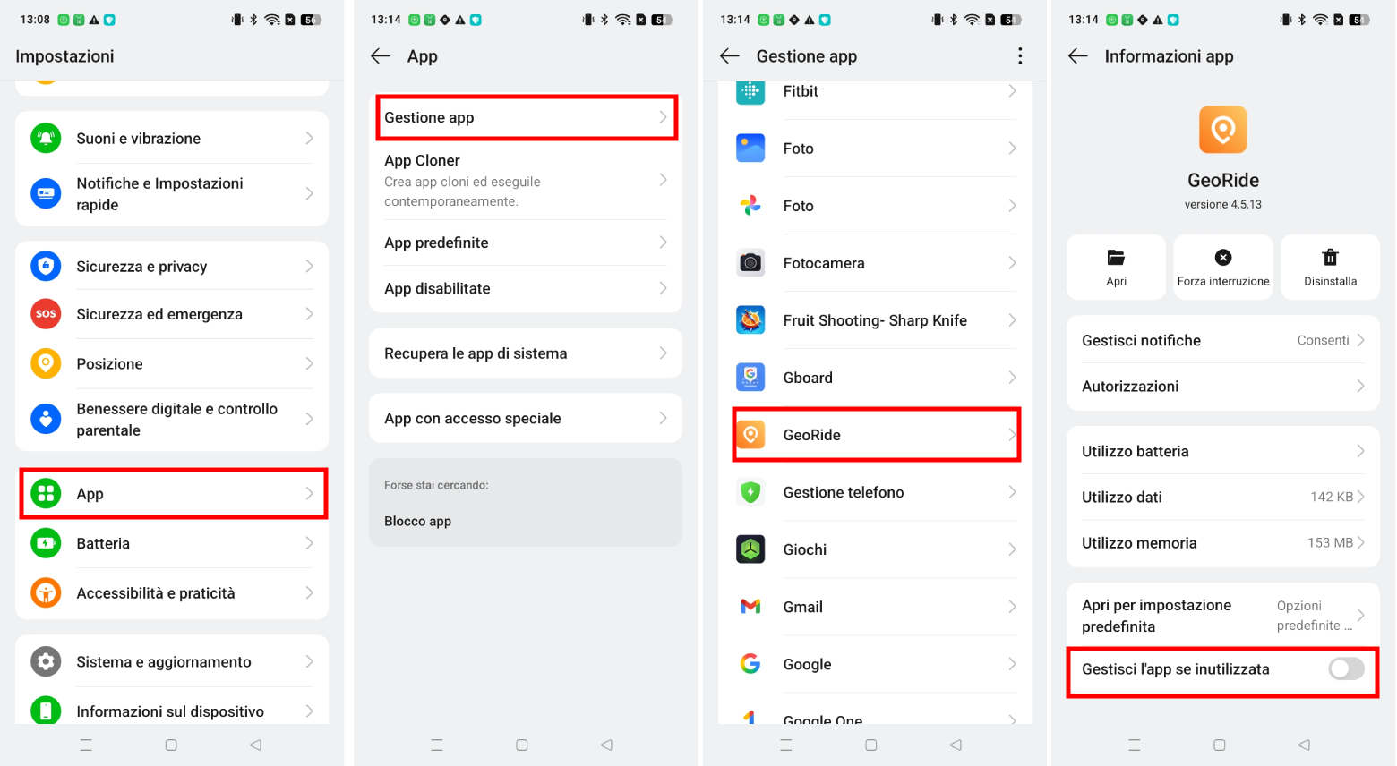 👉 4. Disattiva la restrizione energetica per l'app GeoRide