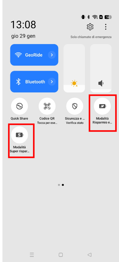Assicurati che la modalità di risparmio batteria (nel pannello delle impostazioni rapide) sia disattivata per evitare restrizioni sulle connessioni Bluetooth.